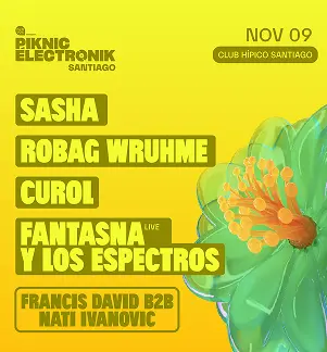 El próximo domingo 9 de noviembre, Piknic Électronik Santiago celebrará su tercera edición de la temporada en el Club Hípico de Santiago, con un lineup que promete una jornada inolvidable. El icónico DJ y productor británico Sasha, pionero del progressive house, será el encargado de coronar la jornada, acompañado por el reconocido artista alemán Robag Wruhme, maestro del techno minimal y los sets emocionales. Desde Brasil llega Curol, figura emergente de la escena internacional, mientras que el talento nacional estará representado por Fantasna Live y Los Espectros, presentando un show en vivo cargado de frescura y ritmo local. Una experiencia única donde la música, la naturaleza y la energía de la #PiknicPeople se fusionan en una verdadera celebración al aire libre.