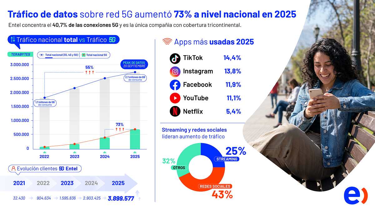 73% Creció el Uso del 5G en la Red Entel durante 2025